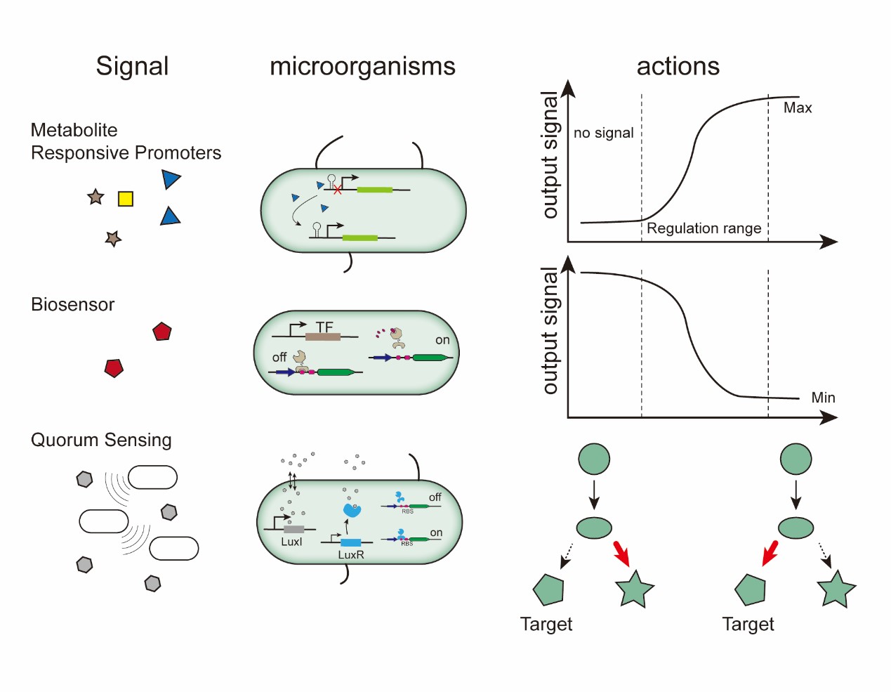 代谢途径的动态调控可以精细地控制代谢流,使目标化合物的合成最大化,在合成生物学和代谢工程领域有着广泛的应用。然而,实现动态调控并非易事,因为代谢途径经常受到细胞内多个调控网络的影响,使用简单的单层控制策略很难获得理想的动态范围。因此,合成生物学家应用逻辑门的概念来构建更复杂的多层遗传回路,这些回路可以处理各种信号并将代谢通量最优地引导至目标分子的合成。