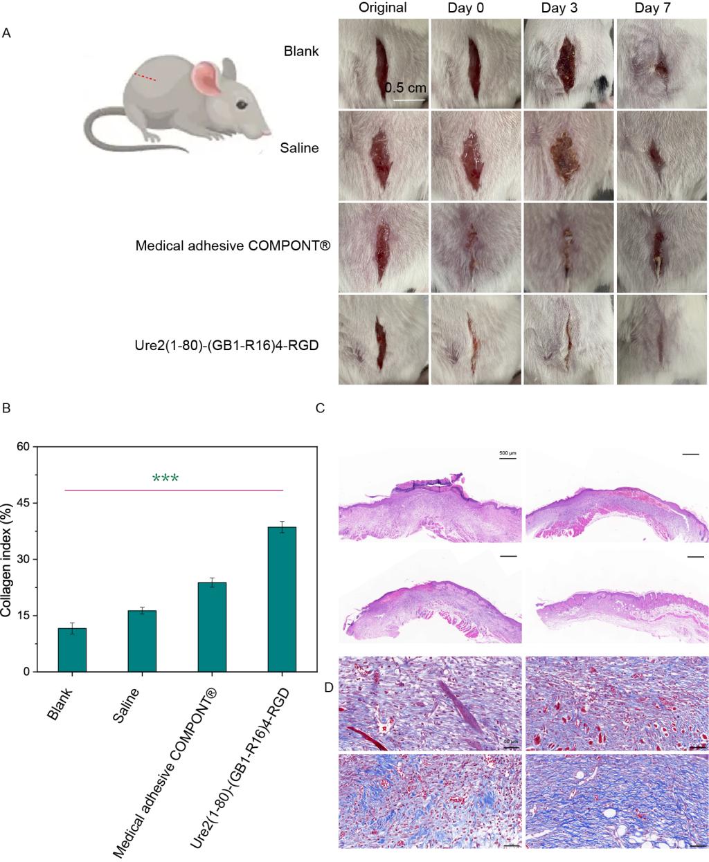 图5 超分子弹性蛋白可替代手术缝合线促进线性伤口的修复和组织再生。