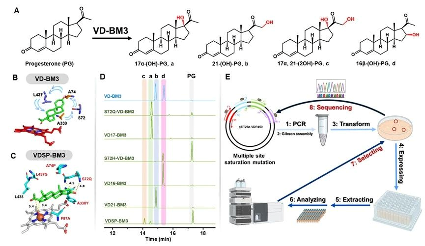 图1 改造P450BM3底物通道提升黄体酮羟基化效率