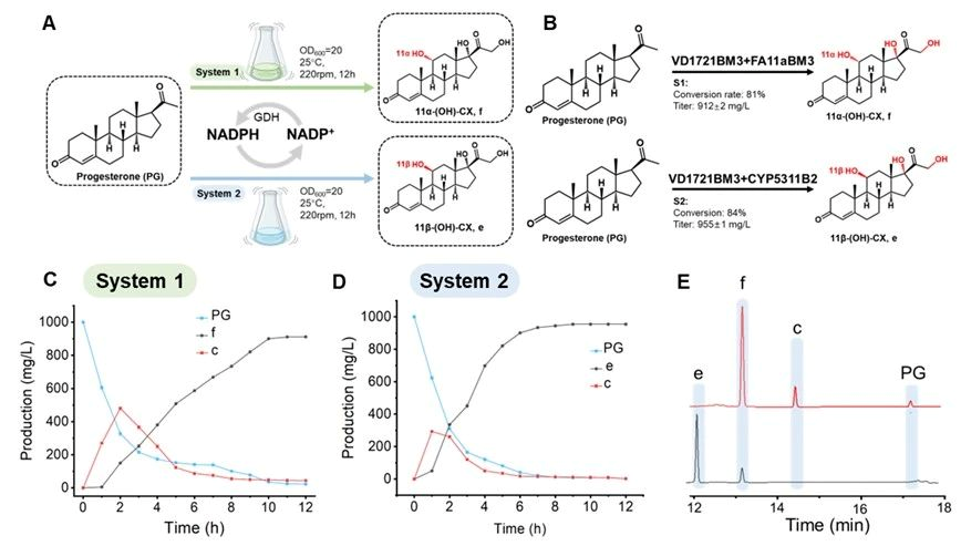图6 构建全细胞催化体系转化黄体酮合成氢化可的松