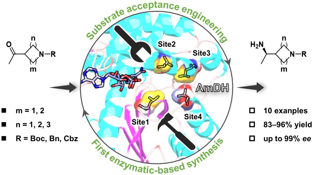 含氮结构基序,包括手性氨基和氮杂烷基环是天然产物、生物活性化合物和药物活性成分中的关键组分,同时含有这两种关键结构基序的手性氮杂环胺是众多重磅药物的构建砌块和合成中间体。因此,开发绿色、可用、高效的手性氮杂环胺不对称合成的生物催化剂是当前手性胺类化合物合成领域的中心主题之一。