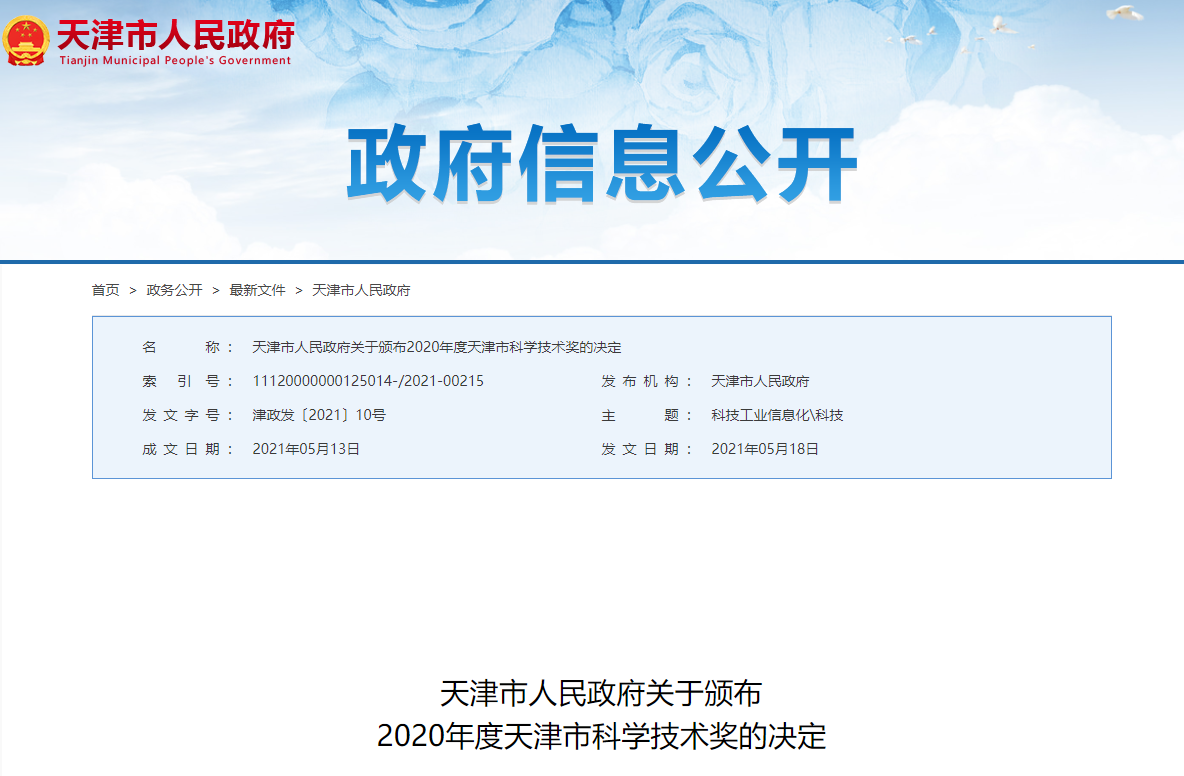5月18日,天津市人民政府正式发文颁布了2020年度天津市科学技术奖的决定。欧美无码