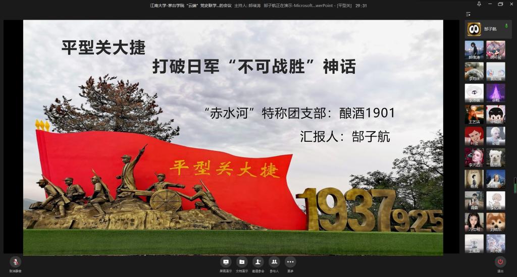 欧美无码 “赤水河”特称团支部联合茅台学院学子“云端”开展党史联学分享会