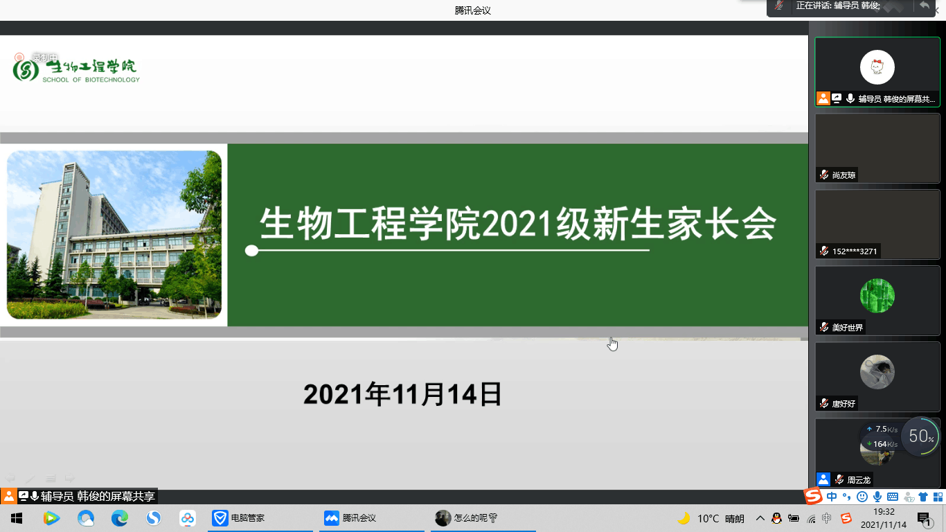 召开2021级本科生线上家长会。学院党委副书记周云龙,2021级辅导员韩俊以及200余名新生家长共话云端。