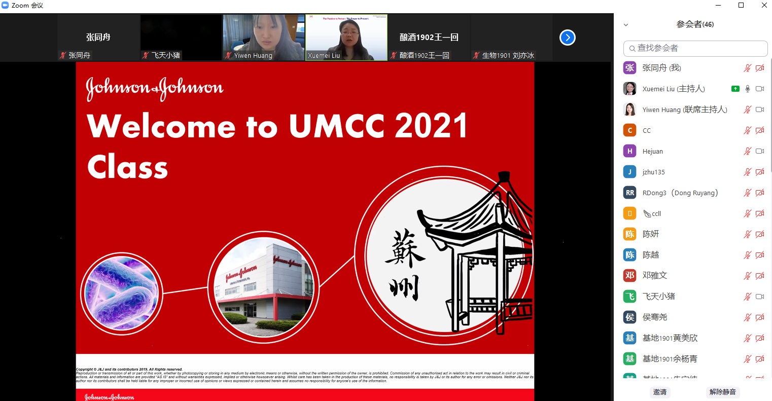 与强生(苏州)医疗器材有限公司2021年度校企合作课程(医疗器械和制药微生物学UMCC模块)开班并进行第一次授课。强生(苏州)公司微生物质量及无菌保证(MQSA)总监刘雪美、MQSA高级研究员黄奕雯、MQSA经理朱健杰、MQSA研究员董薷阳,欧美无码