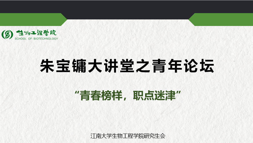 研究生会主席,江苏省“大学生青马工程”第十三期培训班学员,现任宝洁黄埔工厂口腔护理品类风险经理。分享伊始,卢连登以“做不可替代的人”为标题开篇,将大家引入了毕业求职的时期,并结合自身经历,为大家详细介绍了职业分类,选择标准等问题。在求职的过程中,我们可能面对的各种类型的公司以及五花八门的面试方式。在判断的过程中,我们要结合自身因素以及质朴的想法,选择最满足自己心中期待的工作。随后,卢连登学长结合自己在宝洁的工作经历,为我们畅谈了自己的工作感悟,学长儒雅随和,幽默风趣。叮嘱我们,在入职前要为人生新阶段储能,在入职后需要从学生思维向职业经理人思维转变从必然王国向自由王国发展。在互动交流环节,面对同学们关于职业规划和怎样平衡工作与生活方面新奇且丰富的问题,卢连登学长以其独特的幽默语调,以及卓越的理解为大家带来了详尽的解答。鼓励大家在生活与工作中脚踏实地、锐意进取。