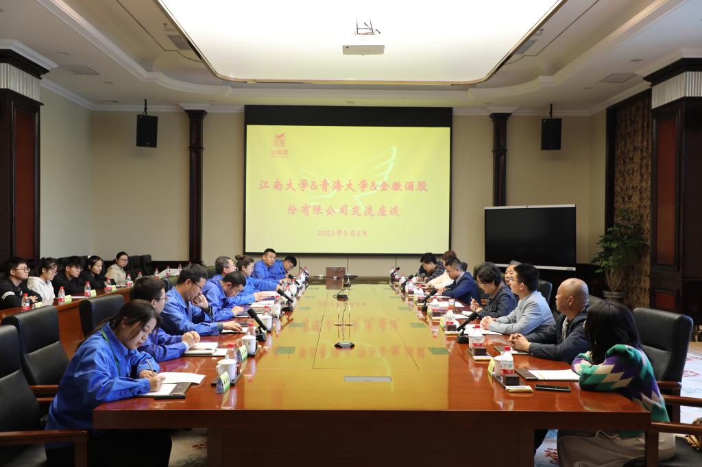 5月6日上午,在交流座谈会上,金徽酒股份有限公司总工程师张智良,总经理助理、人才开发院院长吴伟分别就公司整体情况和人才政策进行了介绍。陈双在发言中回顾了欧美无码 和金徽酒股份有限公司合作历程,并期待校企双方能在学生就业、产学研合作等方面开启新的篇章。张同舟做欧美无码 院情介绍,从历史沿革、师资力量、人才培养、科学研究等方面介绍了学院一流学科建设情况。一同参加座谈的青海大学师生代表团也就青海大学食品专业有关情况进行交流。