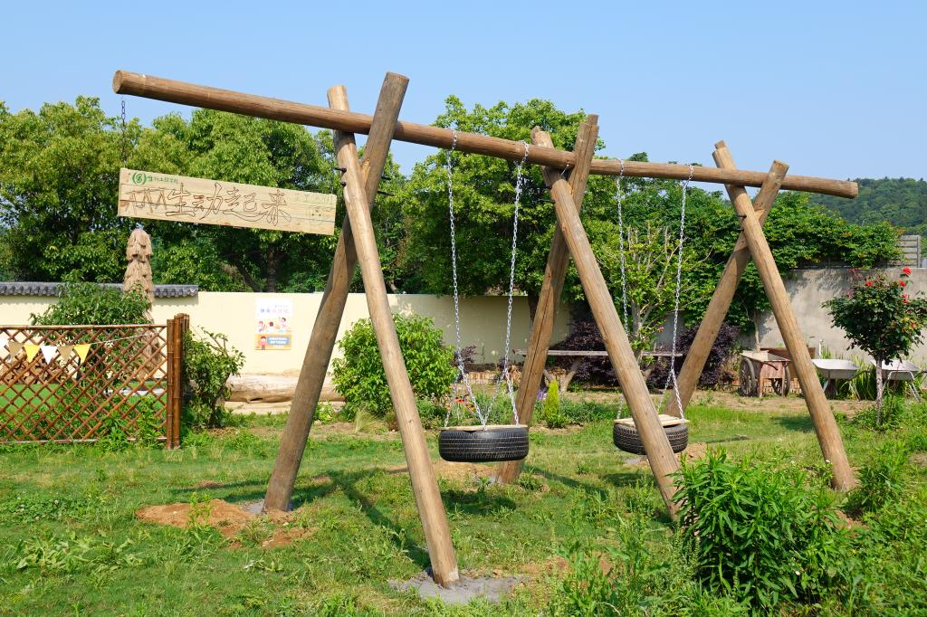 本次实践活动的主题是制作木制秋千。在实践基地老师的指导下,同学们分为四组,分别完成了搭建立柱、制作展示牌、安装秋千底座和制备水泥等工作。尽管烈日炎炎,但同学们依然热情高涨,积极参与。在有序高效的分工合作之下,历经四个小时的不懈努力,最终完成了秋千的制作。