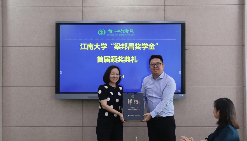 惠赠仪式上,梁广友向学院赠送了“梁邦昌先生从事酿酒事业62周年纪念酒”,程捷音代表学院接收惠赠。随后举行奖学金颁奖仪式,徐岩和梁广友分别为获奖学生发放证书,赠送纪念酒。座谈交流中,获奖学生王露露、郜子航分享了自身学习、科研情况,并表示会传承梁老先生的精神,尽己所能回馈企业、回馈社会。