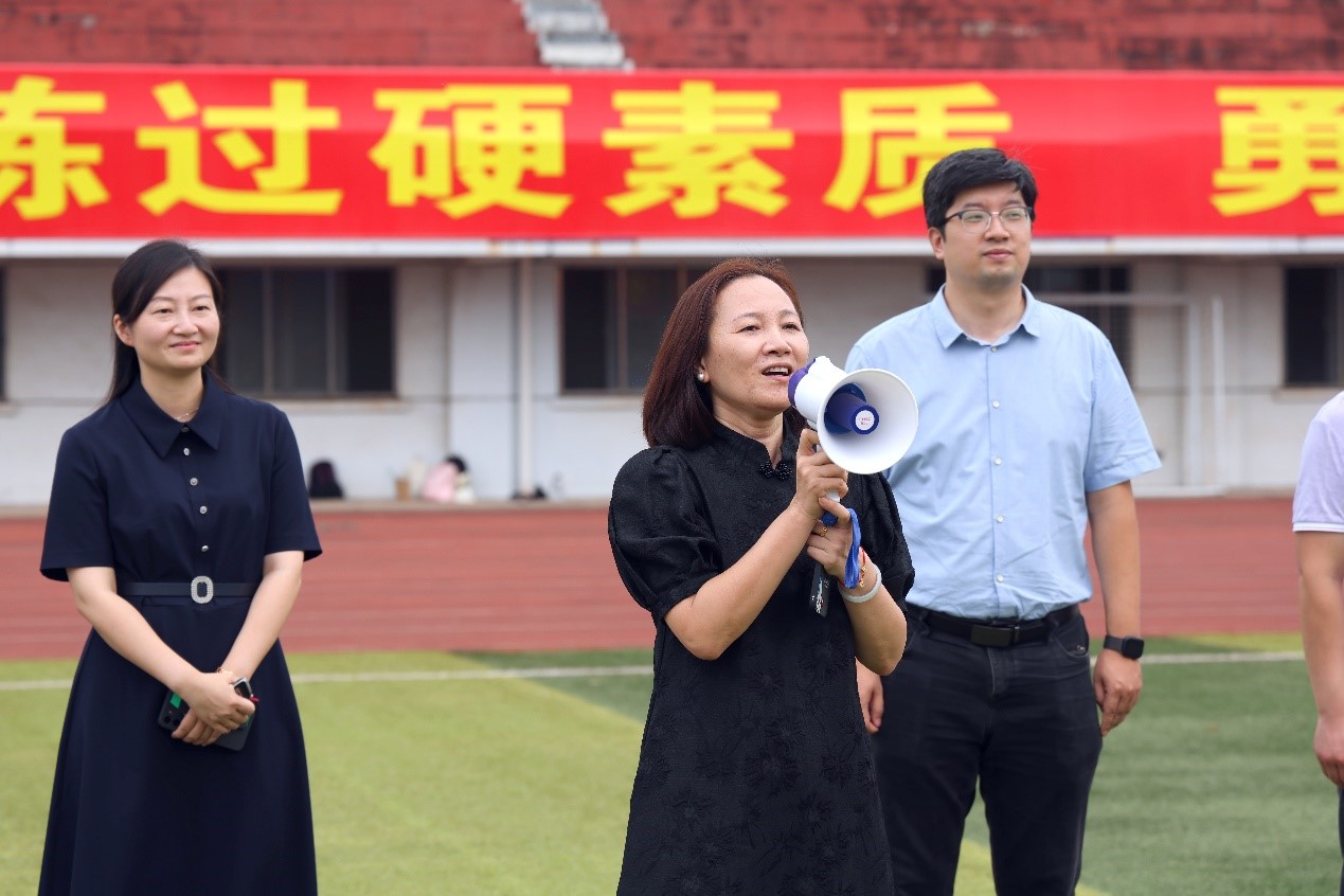 检阅完毕后,程捷音作军训慰问讲话。她对带训教官的辛苦付出表示衷心感谢,并对全体参训教官和学生提出三点希望。一是希望教官以严格的要求开展训练并检验军训成果,二是希望同学们坚决服从教官的指令,认真落实好军训期间每一项要求,三是希望同学们能够通过军训磨练意志、强健体魄,以一流要求和水准完成军训汇演,充分展示生工学子一流的精神面貌。