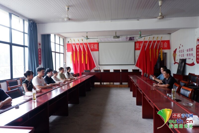 图为团队成员采访村委成员。中国青年网通讯员 苏鑫 摄