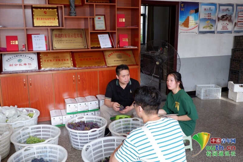 图为团队成员采访农业现代园园长。中国青年网通讯员 苏鑫 摄
