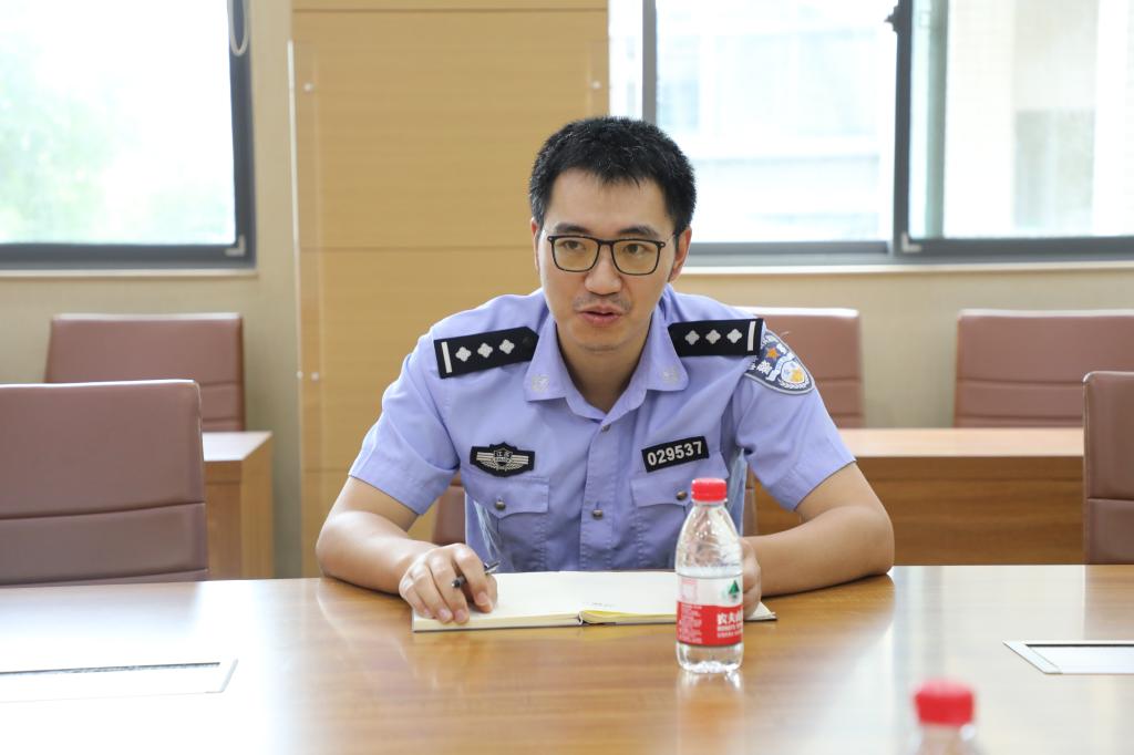 社区民警董蕾来我院调研指导校园反诈工作。学院党委副书记、副院长林丹,学工办主任周春江及全体辅导员参加调研交流。