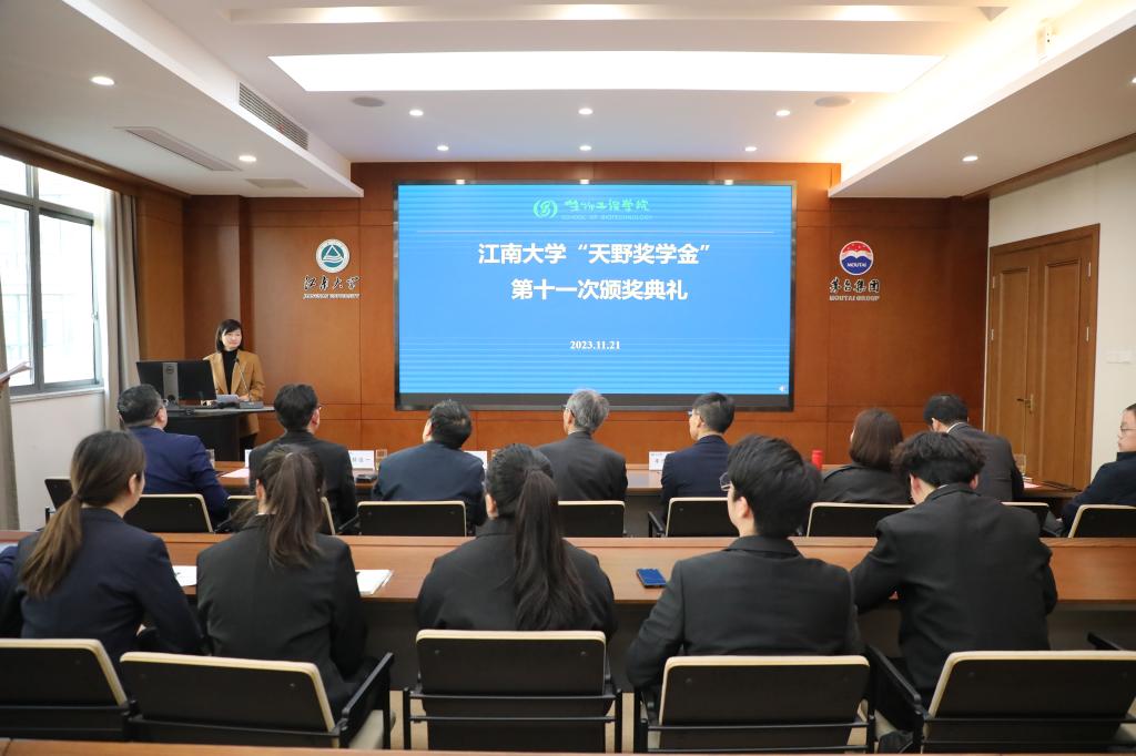 程捷音宣读获奖名单。赵英汉、张长太、李洋等19名同学分获本次“天野奖学金”一、二、三等奖,细胞培养肉团队获评团队奖。颁奖仪式上,陈坚、小林俊一、刘龙分别为一、二、三等奖获得者颁奖,天野源之为团队奖颁奖。学院2021级硕士赵英汉作为获奖学生代表发言。他回顾了自己在食品合成生物学与生物制造团队的学习科研经历,并对天野酶制品株式会社的资助和欧美无码