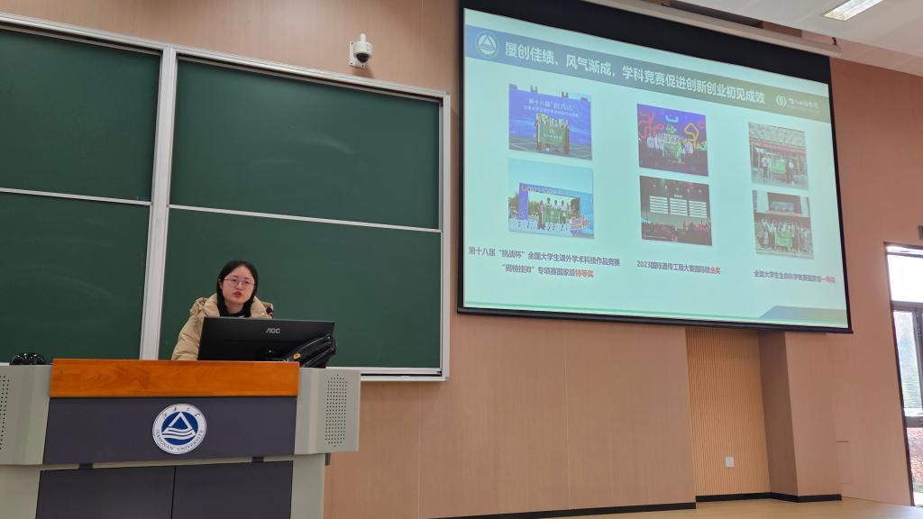 第十八届“挑战杯”揭榜挂帅专项赛道特等奖获得者李汶分享了参与科创竞赛的心得体会。她以培养微生物的过程类比竞赛,从竞赛性质、竞赛目的、竞赛过程和时间管理四个方面阐述了科创竞赛关注要点,并勉励各位新生珍惜时间、把握当下,体验每一份科创竞赛中的独特感受。