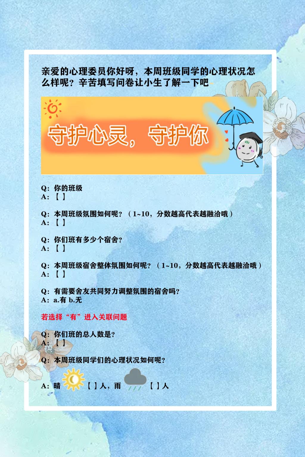 学院心理健康风险点排查月报、班级晴雨表周报、团队动态月报