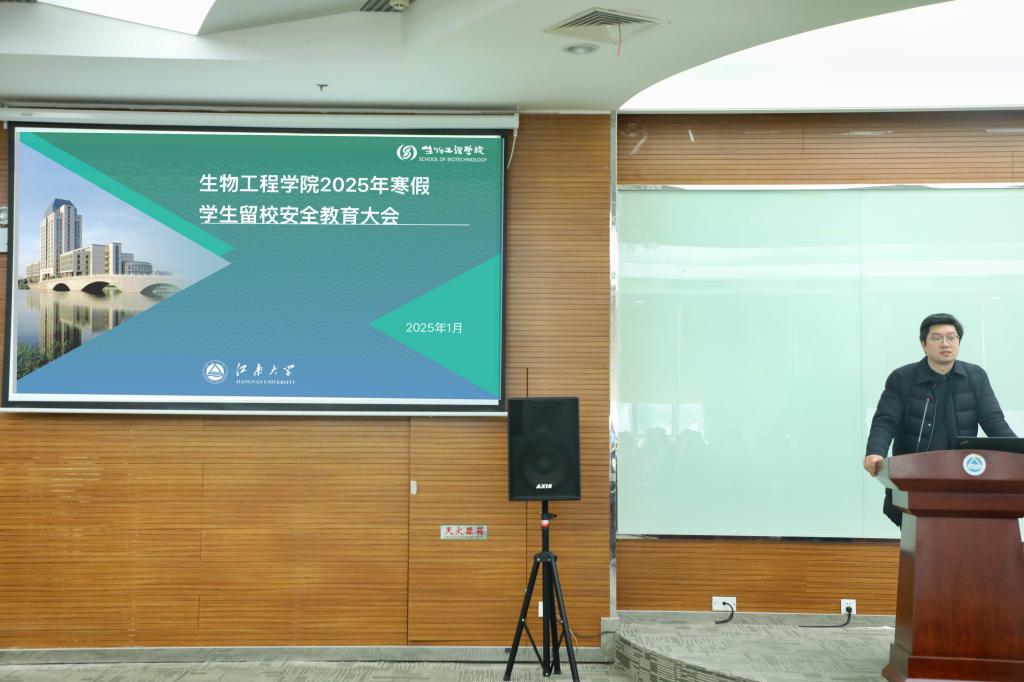 提高站位,绷紧“安全之弦”。1月10日上午,学院召开全院教职工大会,学院党政领导班子,全院教职工共同参与。党委书记程捷音详细解读了《关于2024—2025学年寒假前后学校主要工作安排的通知》,并强调了政治安全、实验安全、出行安全、假期留校安全、网络安全、防范电信诈骗的重要性。学院各副院长还就分管工作对假期安全做了重要提醒。