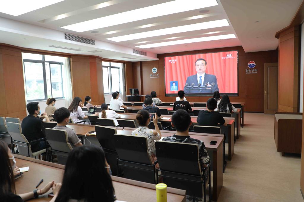 组织师生在会议厅、实验室、家中通过电脑、手机、电视等多种方式收看开幕会直播,关注两会动态。本次会议是在统筹推进新冠肺炎疫情防控和经济社会发展的关键时刻、全面建成小康社会决胜阶段召开的一次重要会议,是我国政治生活中的一件大事,为全国人民提振士气,努力在攻坚克难中开创发展新局面,注入极大信心和动力。