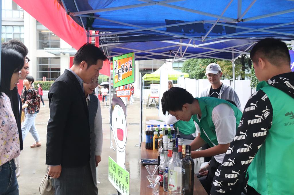 学院迎新现场布置有序。在学院风采展示区,整齐的罗列着学院自2017年到2019年的工作成果,让新生们全面了解学院的工作及发展情况。在特色社团互动区,酒协与精酿俱乐部的同学们向新生宣传酒文化和发酵精神。在基地班报名确认处,志愿者们详细为同学们做出解答并完成报名确认。学院特色玩偶“平板菌”,也吸引了新生们的兴趣,同学们纷纷在“江南新生代”迎新幕布上签名。