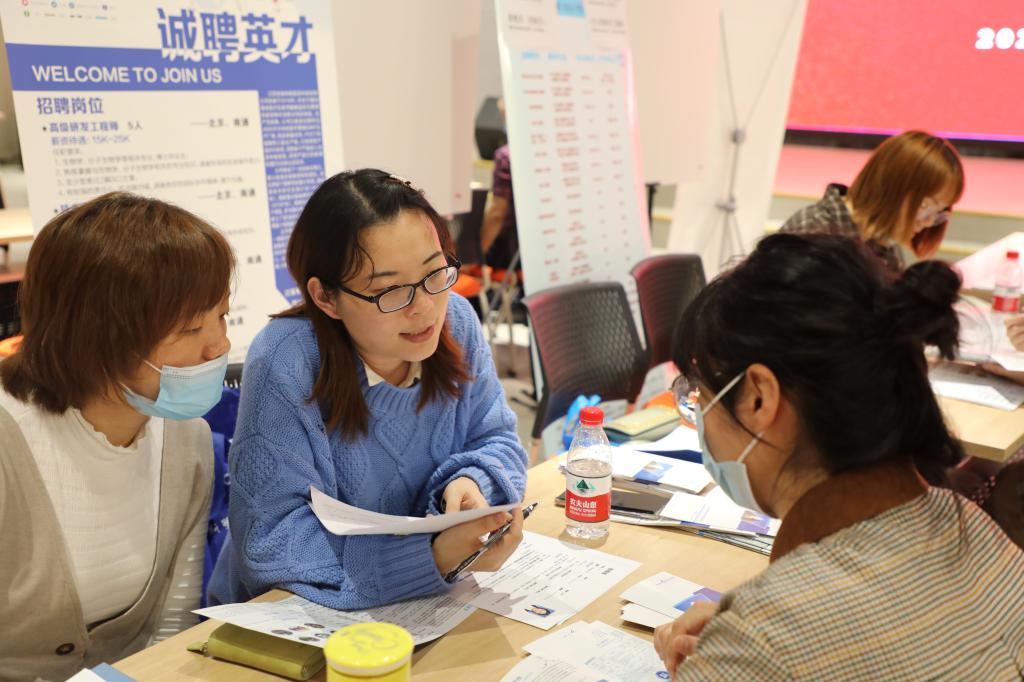 于北区大学生活动中心举行2021届毕业生秋季专场招聘会。在做好常态化疫情防控工作情况下,经学院审查筛选,共有31家单位参会,提供800余个就业岗位,吸引近300名学生参与。