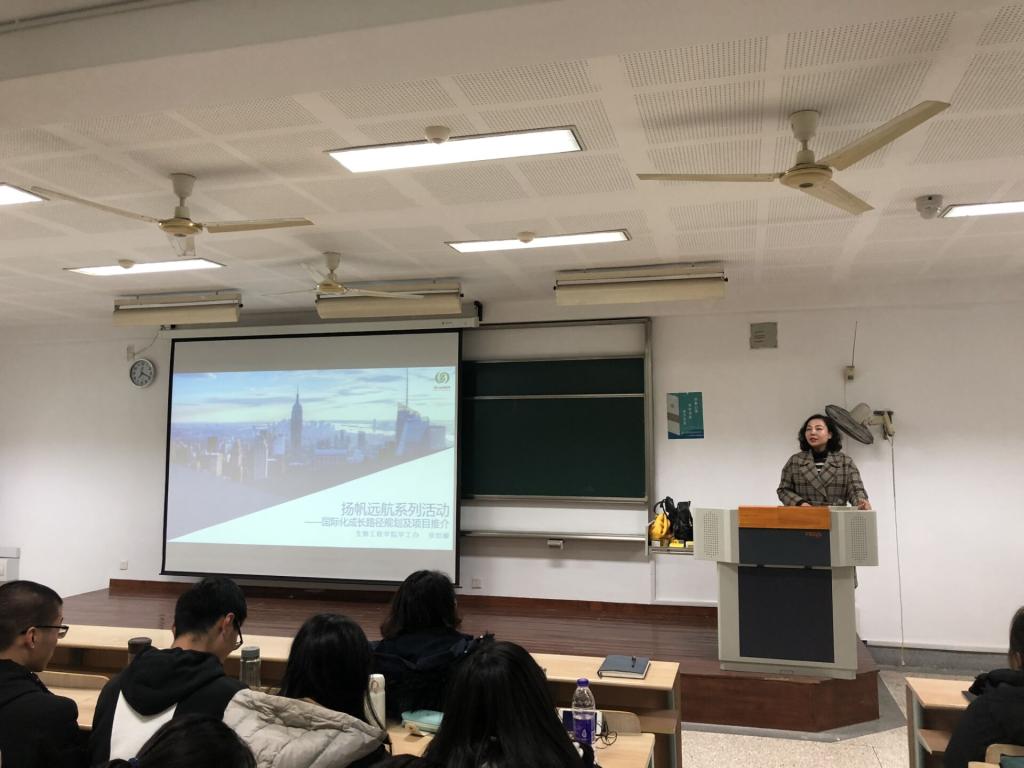 首先,徐老师做了海外交流分享,从“为什么需要国际化视野”、“什么是国际化成长”、“互联网时代出国必要吗”、“学院国际化资源”及“学院学生海外交流情况”五个方面为大家介绍,并结合自己的亲身经历鼓励大家参与国际交流活动,利用学校资源,做好国际化成长规划,成为具有国际化视野和格局的人才。