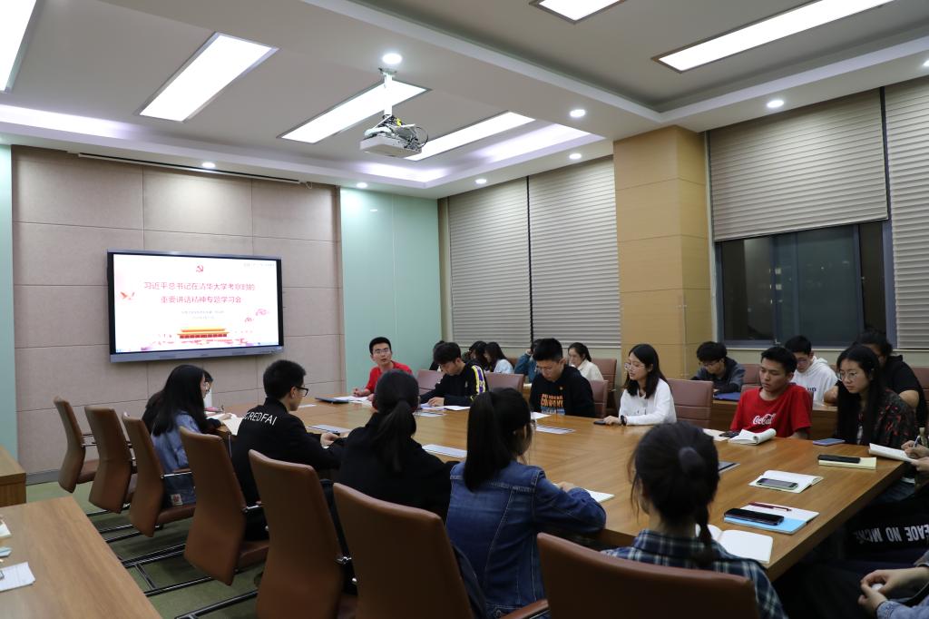 本科生第一党支部在生工楼B327召开会议,专题学习习近平总书记在清华大学考察时的重要讲话精神,辅导员张同舟、宋大有和支部全体党员参加了学习会。