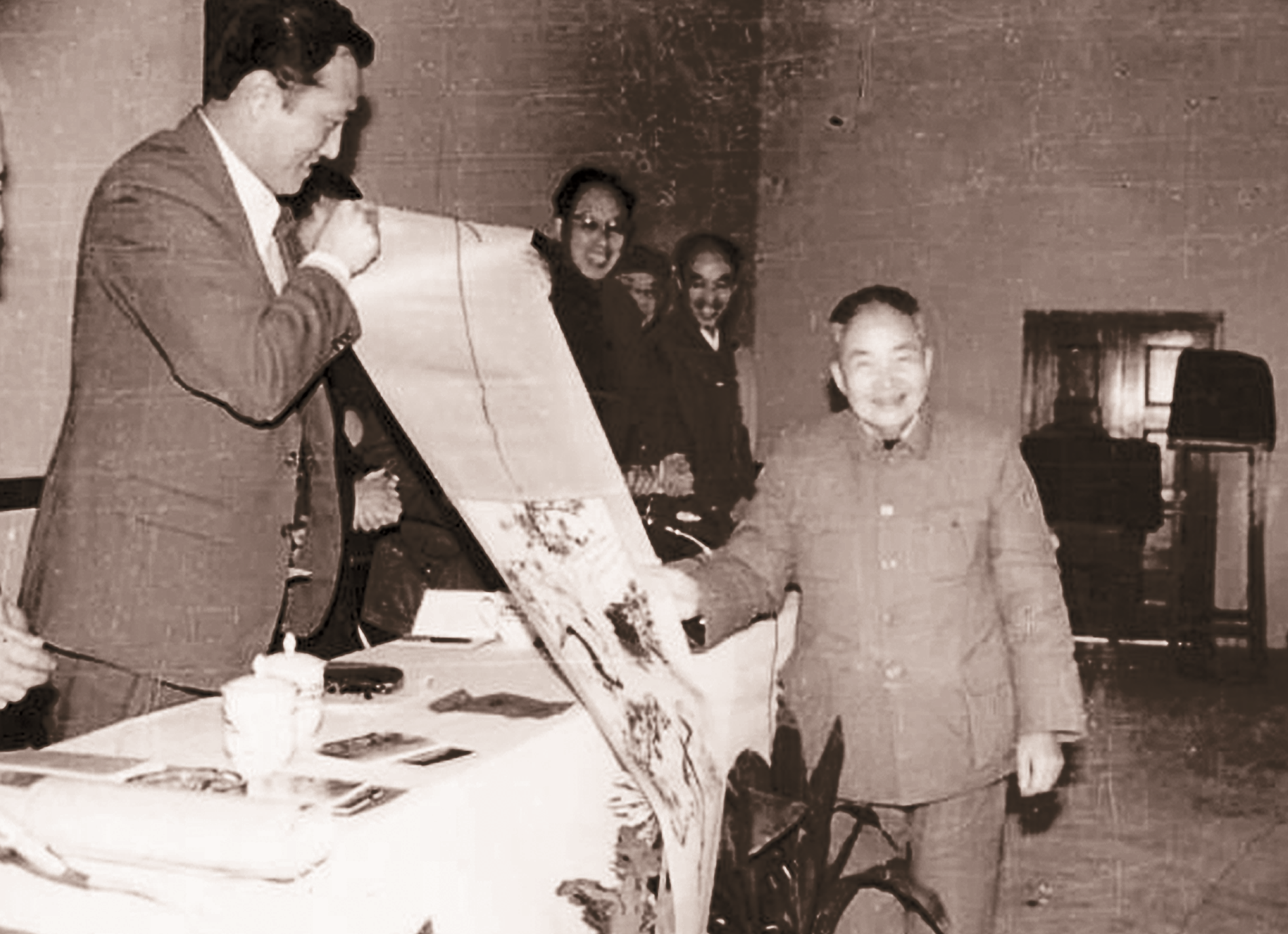 朱宝镛教授八十大寿轻工业部陈士能副部长赠梅鹤国画,1985(右图)