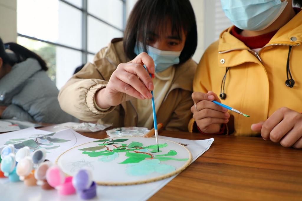 鸟语蝉鸣,石榴花开,高山密林,划舟采莲,我画的这幅团扇虽然小巧,但别有一番诗情画意。”参加品味团扇国韵之美的张同学开心说到。团扇是中国汉族传统工艺品及艺术品,代表着团圆友善、吉祥如意。