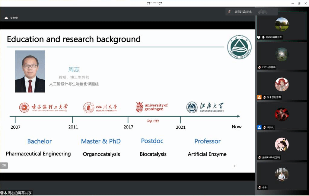 生命科学与健康工程学院教授、博士生导师周志老师为大家带来“人工酶:为生命带来新的色彩”主题学术讲座。