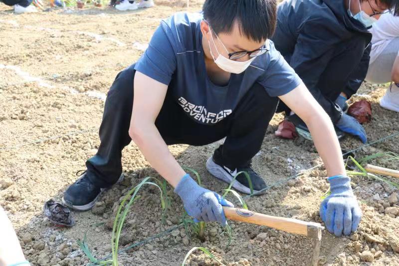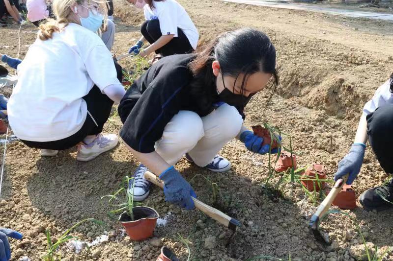 5月17日下午,同学们来到了学校的劳动教育基地进行萱草的种植。后勤的专业养护人员为同学门普及了萱草的药用价值、有关萱草的历史趣事以及种植技巧。讲解过后,同学们5人一组领取了草苗和种植工具,充满激情地挥舞着锄头在尘土飞扬间挥汗如雨。不一会,一块块方形的土地上马上就排列起了整齐的萱草苗,让原本光秃秃的土地瞬间焕发了生机。在炎炎烈日下,伴随着汗水和一根根站立起来的萱草苗,同学们在种植的过程中享受着劳动带来的充实和快乐。