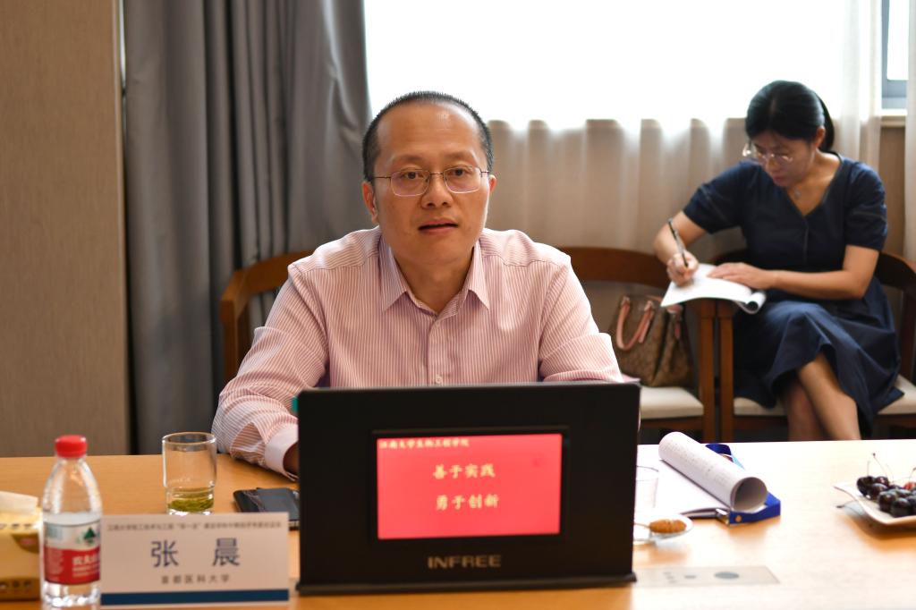院长刘龙,生命科学与健康工程学院党委书记史志洪,生命科学与健康工程学院院长尹健等参加了论证会。会议由刘飞主持,论证环节由专家组组长张晨主持。