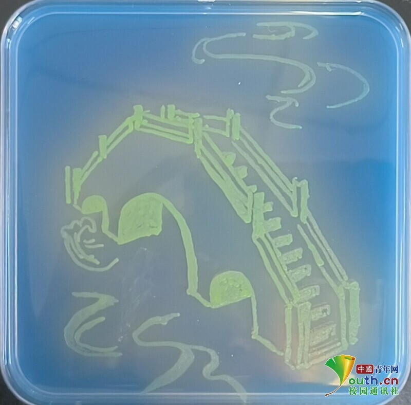 校徽菌落画。中国青年网通讯员 解修兵 摄