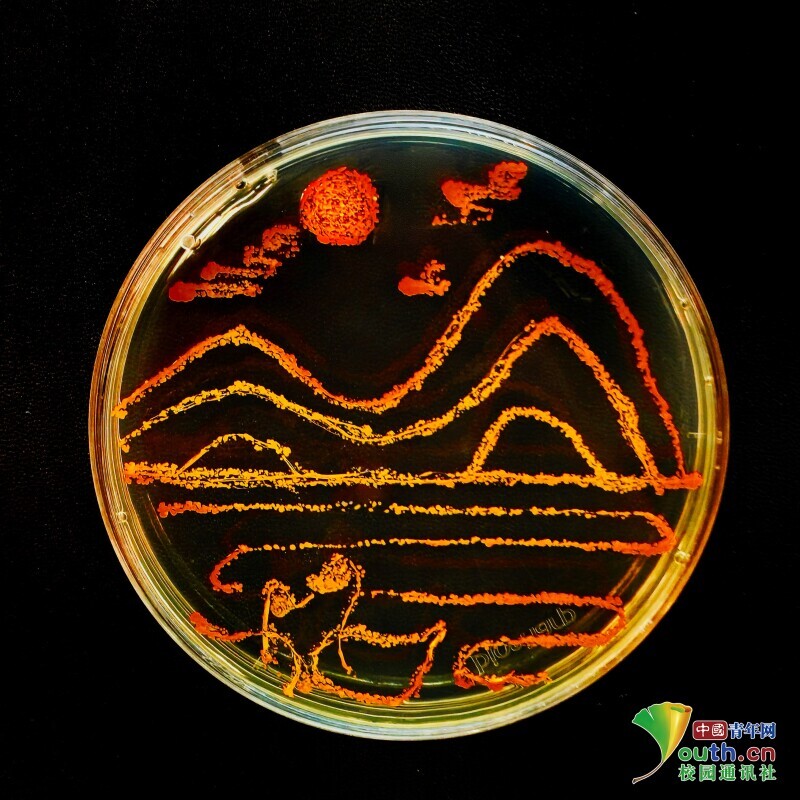 校园风光菌落画。中国青年网通讯员 解修兵 摄