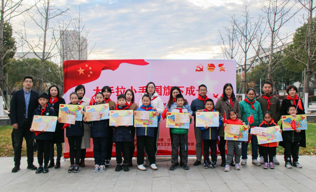党委常态化组织“大手拉小手,国旗下成长”品牌活动,定期邀请青年教职工及其小学生子女,与国旗护卫队同学一起升国旗,唱红歌,让爱国情感在青年教师、大学生、小学生之间流转传承、相互赋能,培养学生责任担当意识,服务青年教师成长发展。