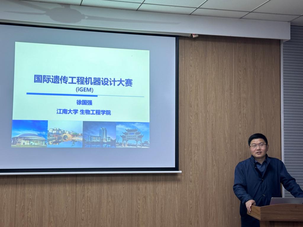 3月29日,双创训练营专家导师徐国强在生工B417会议室面向2024年iGEM团队成员开展培训辅导工作。徐国强讲解iGEM竞赛相关知识,分享团队建设经验,针对往届iGEM经典参赛案例进行详细剖析,同时与2024年学生团队共同探秘“合成生物学”。他指出,iGEM是一个跨学科的探究性竞赛,以现实问题为导向,合作式项目制学习为基础,在iGEM竞赛中拿到奖项固然是最直观的一种收获,但iGEM真正价值的实现,不在于获奖,更在于参与者自身。培训结束后,2024年iGEM实验组、HP组、建模组、设计组和网页制作组分别汇报工作进展,进行深入探讨交流。