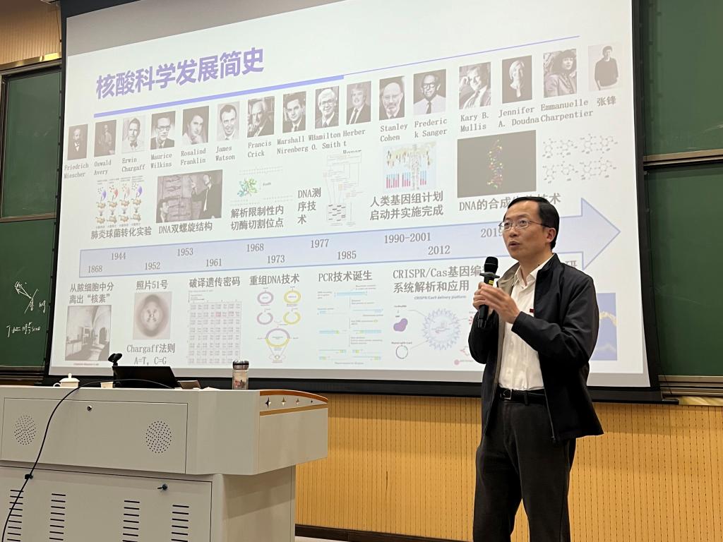 的办学历史、学科特色与专业优势。周楠迪、翟齐啸、胡伟峰分别以“功能性核酸分子漫谈”“肠道微生态与人体健康”“创新的催化剂——工业设计”为题给学生进行科普宣讲。三场科普宣讲充分展现了我校轻工技术与工程、食品科学与工程、设计学三个顶尖学科的学科实力,也为青年学子打开了一扇探索科学奥秘之门。