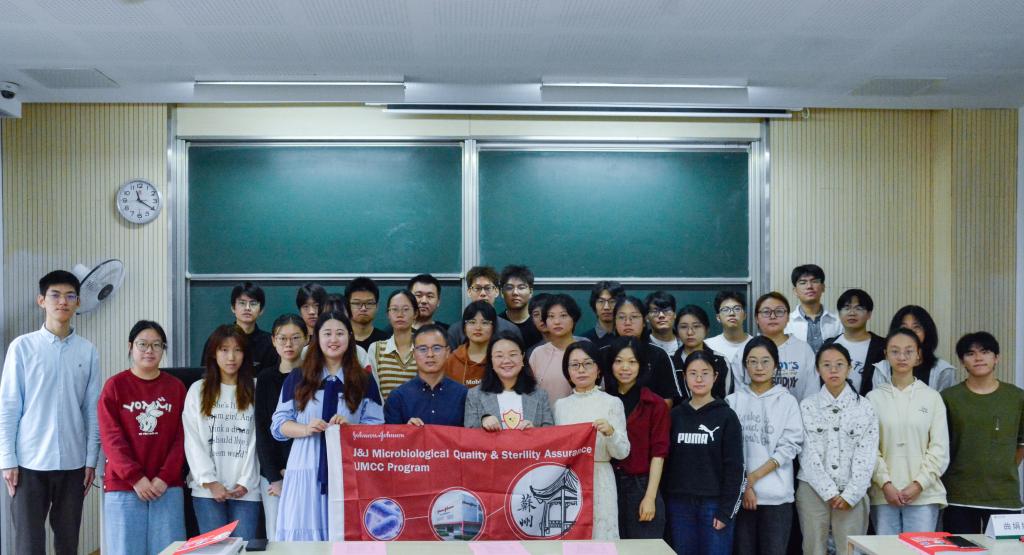 与强生(苏州)医疗器材有限公司2024年度校企合作课程(医疗器械和制药微生物学UMCC模块)正式开班。强生(苏州)医疗器材有限公司微生物质量和无菌保证(MQSA)总监刘雪美、MQSA经理朱健杰、MQSA高级研究员曲娟娟、MQSA研究员孙艺萌,欧美无码