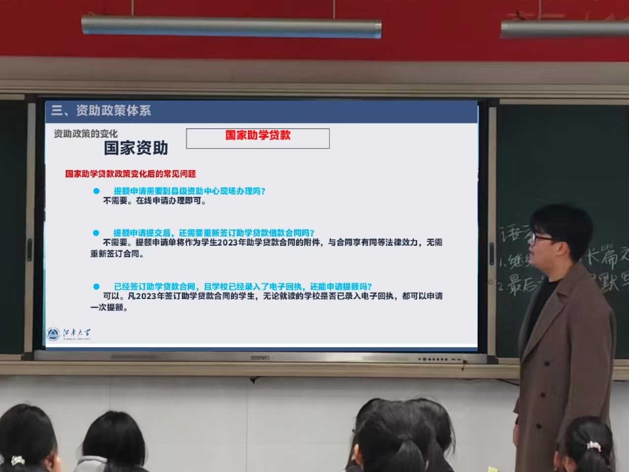 选拔优秀受奖助学生担任学生资助宣传大使,开展资助政策宣讲活动。