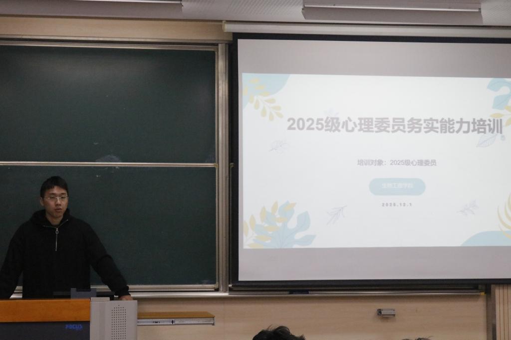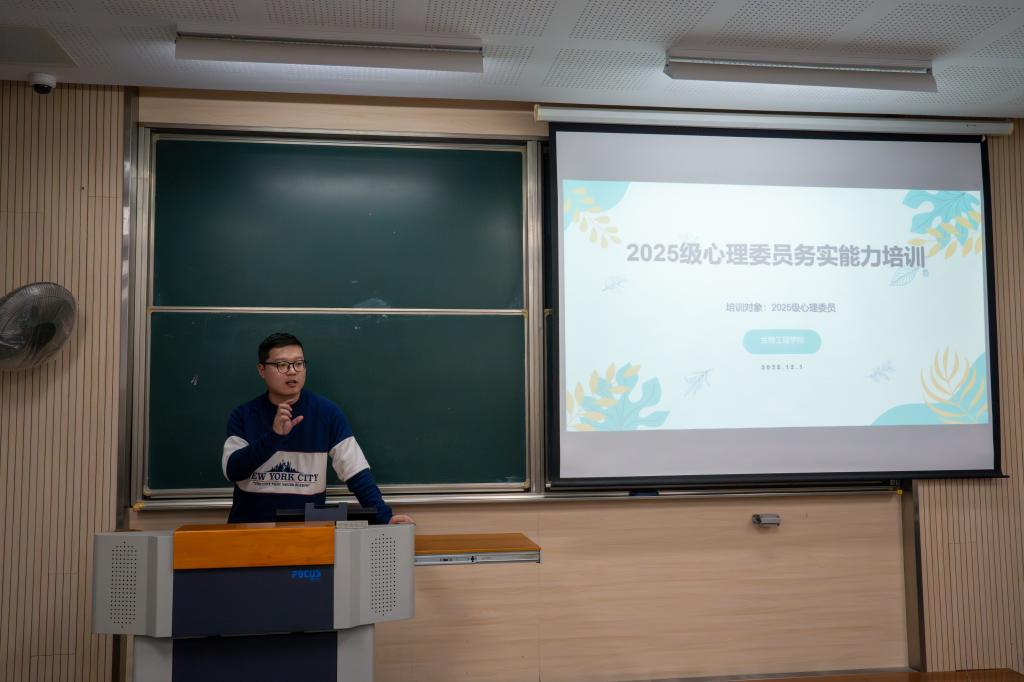 在二教2A213举办“心灵灯塔计划”2025级新生班团干部心理工作务实能力培训。学院心理辅导员王珏、新生辅导员贺煜添、学院心理朋辈互助协会成员以及2025级新生班长、团支书、心理委员等主要班团干部参与本次培训。