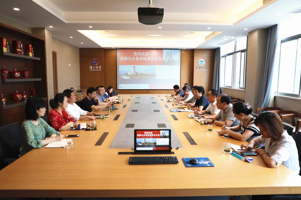 会上,王维书记对国教与北美学院同仁的到来表示诚挚欢迎,并结合党委疫情防控、青年人才托举工程等具体工作,就学院党建的整体思路、制度建设、育人载体、工作平台等方面进行了介绍。许正宏院长介绍了学院国际合作与交流工作的整体情况,并针对国际学生招生培养中的重点难点问题表达了看法,包括发挥好一流学科优势特色增强对留学生的吸引力,优化课程体系设置实现中外合作办学双方课程教学的良好对接等。聂尧副院长具体介绍了学院目前正在积极推进的中外合作办学项目的进展情况。