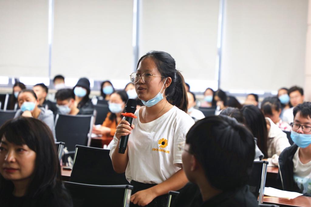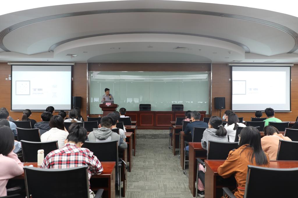 取得的科研成就和优美的校园环境给予了高度的赞赏和肯定,以“百年未有之大变局”的疫情和国际形势为导语展开了“上下求索”“慧眼洞见”“开启未来”三个篇章的讲述。第一篇章,李教授通过分享自己所创作的诗句,介绍了自己所在的团队以及仿生材料相关课题,生动展示了科研工作者的家国情怀。第二篇章,李教授着重阐述了科研创新与艺术修养结合的重要性,它是激发想象力的重要手段。第三篇章,李教授以“科技是把双刃剑”为主题强调了科研工作者应保持初心与热爱,并以自然界中的“共生效应”为例强调要加强合作交流。讲座结束后,现场同学踊跃提问,李教授以自身的经历与感悟为同学们一一解答并鼓励学子进入研究生学习已是跨越了不小的山峰,未来再多的坎坷也不足为惧,现场气氛活跃,热情高涨。