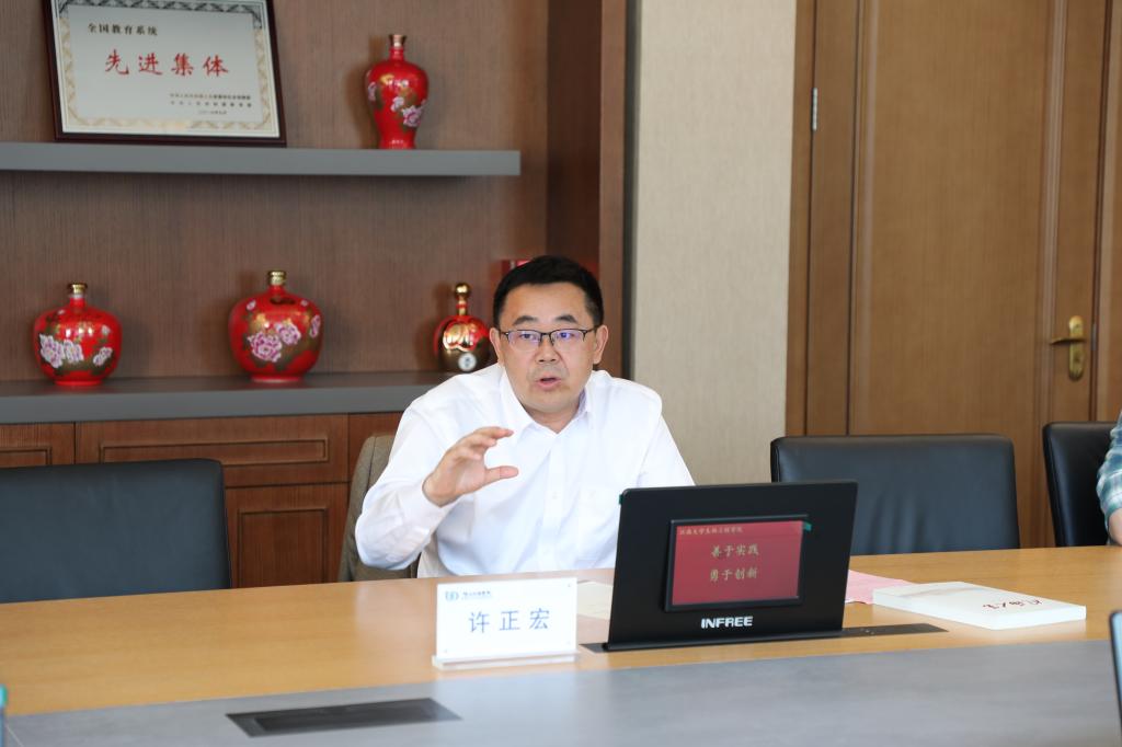许正宏院长对厉宝平一行对来访表示欢迎,他就学院目前学科发展的布局,以及近年来学院在社会服务方面的思路和举措,进行了详细介绍。刘延峰对学院学科建设思路和举措,科研产业转化案例进行了分享。