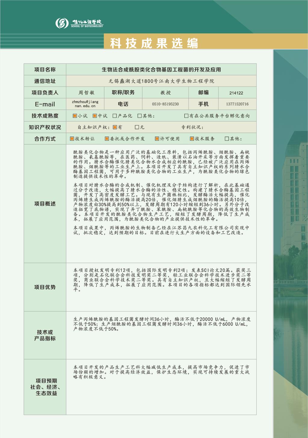 工业生物技术教育部重点实验室