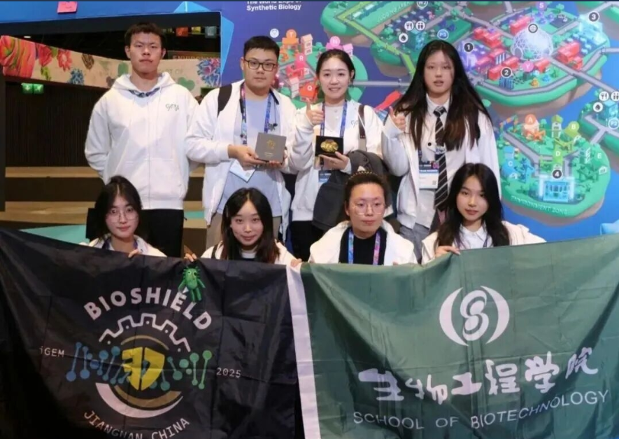 在巴黎总决赛现场,Jiangnan-China团队成员沉着自信、发挥稳定,凭借扎实的合成生物学理论基础、严谨清晰的实验数据、富有创见的项目设计与解决方案,以及对合成生物学伦理和可持续发展议题的深刻理解,全面展现了过硬的专业素养、创新能力和高度的社会责任感。其出色表现赢得了评委的广泛认可,最终在激烈的竞争中脱颖而出,成功斩获国际金奖。