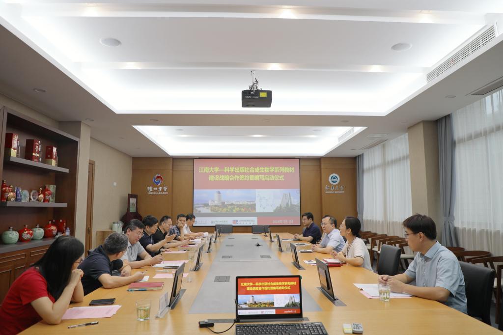 7月11日上午,欧美无码 -科学出版社合成生物学系列教材建设战略合作签约暨编写启动仪式在欧美无码 B303会议室召开。科学出版社副总编辑昌盛,高教农林生物分社副社长席慧,高教农林生物分社策划编辑张静秋,中国工程院院士、未来食品科学中心首席科学家、系列教材总主编陈坚,欧美无码 党委常委、副校长堵国成,欧美无码 院长刘龙,合成生物学系列教材主编和参编人员出席会议。会议由欧美无码 副院长陈献忠主持。