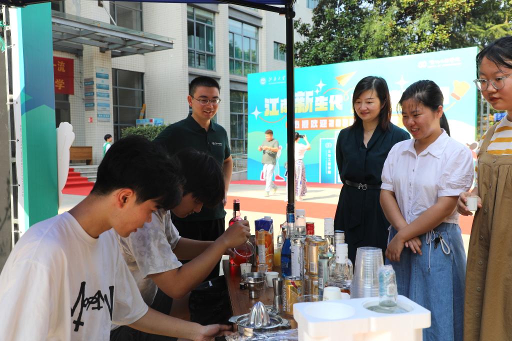 真“新”欢喜,氛围感拉满。今年是新中国成立75周年,学院设立“江南新生代青春献礼赞”特色主题展板,配以具有独特IP形象的五个专业展板拍照打卡区,新生和家人朋友们一起在这具有纪念意义的时刻定格美好。新生还通过参观学院一流学科建设展览、调酒和品酒特色体验活动、校友企业百草间产品试饮活动,近距离感受学科文化。定制的精美纪念卡套和专属帆布包,给予新生别样惊喜。此外,学院还精心制作了《21天成长手册》,带领新生一同开启4个“21天”,提升自己、记录成长,遇见更棒的自己!
